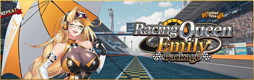Don't miss out on "Racing Queen Emily Package", which includes her limited-time "Racing Queen Emily" costume and various materials!